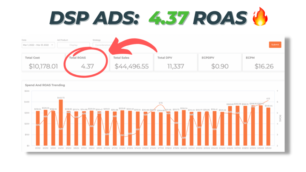 4.28 ROAS for the first 90 days on DSP