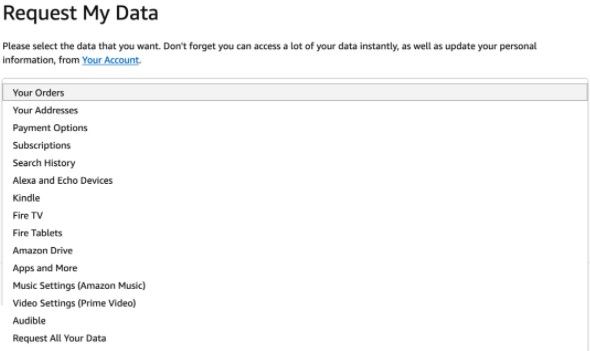 Step 4. Navigate to Amazonâs Request My Data page.